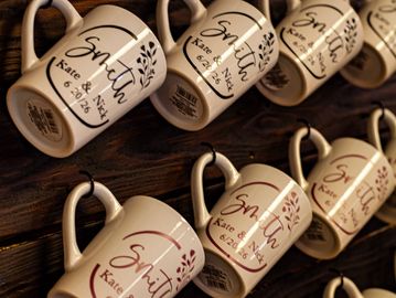 A rustic, functional display piece ideal for beverage stations, coffee bars, or curated mug setups. It adds a charming handcrafted touch while keeping items organized and visually appealing.