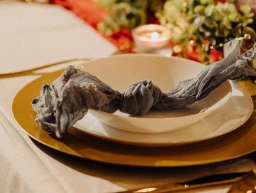 Soft, textured napkins that bring an organic, airy elegance to each place setting. Their relaxed drape adds warmth and understated sophistication to any tablescape.